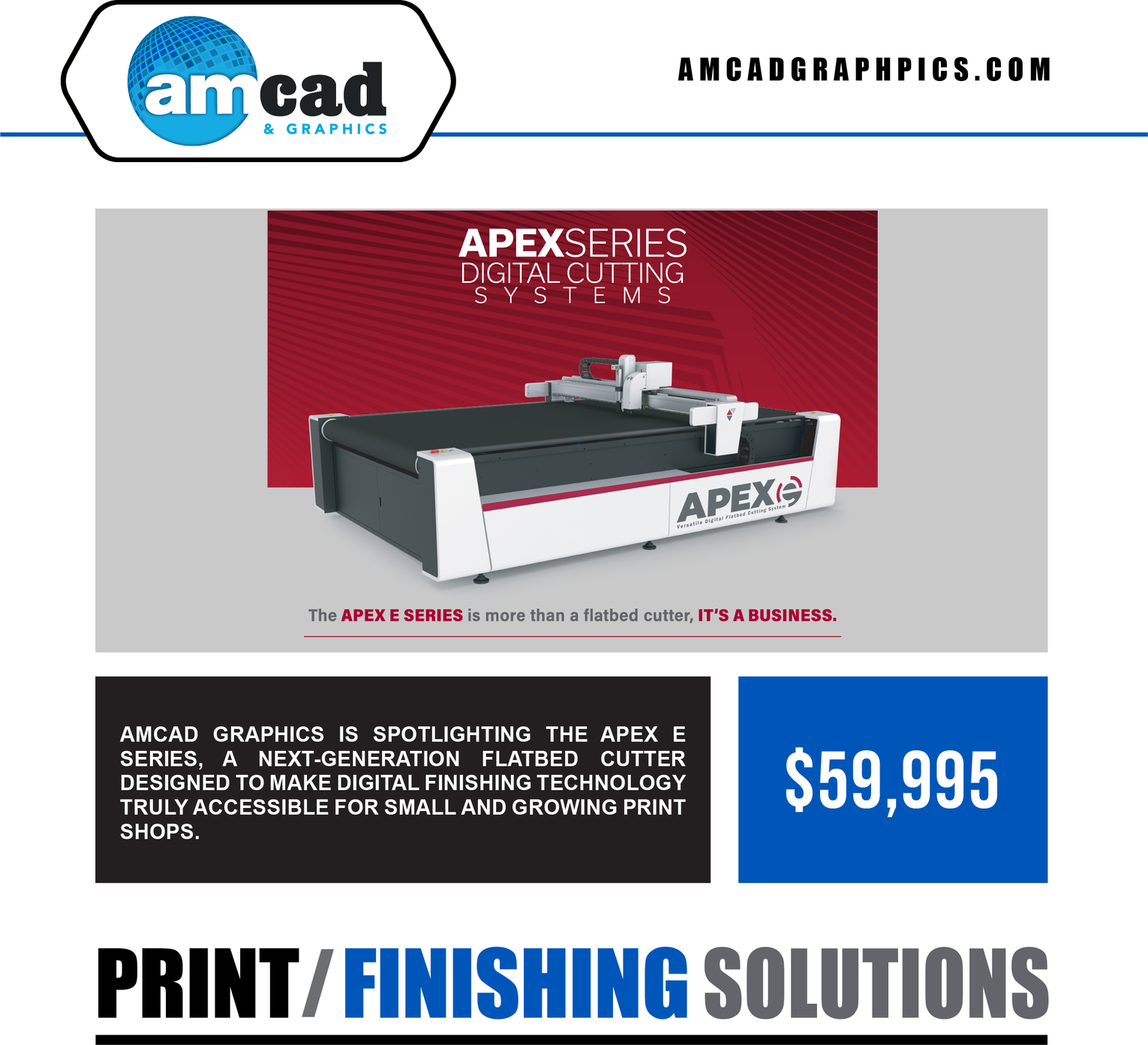 Amcad & Graphics features a diverse range of Print and Finishing solutions from award winning industry leaders. Learn more about Industry Leading Printing Solutions From Mimaki USA, CET Color, Vanguard Digital Printing Systems Learn more about Industry Leading Finishing Solutions from CUTWORX USA, CWT Graphics Worktools, Comagrav CNC, Foil Laminators and more.
