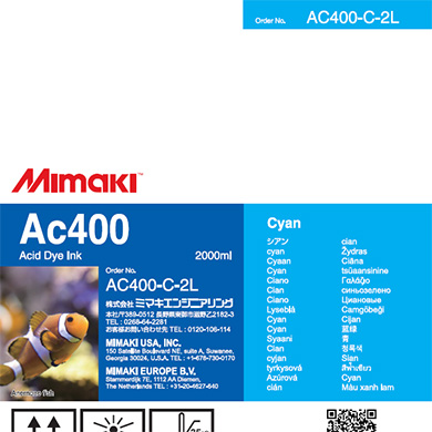 - Mimaki AC400-C-2L Ac400 Acid dye ink pack 2L Cyan
