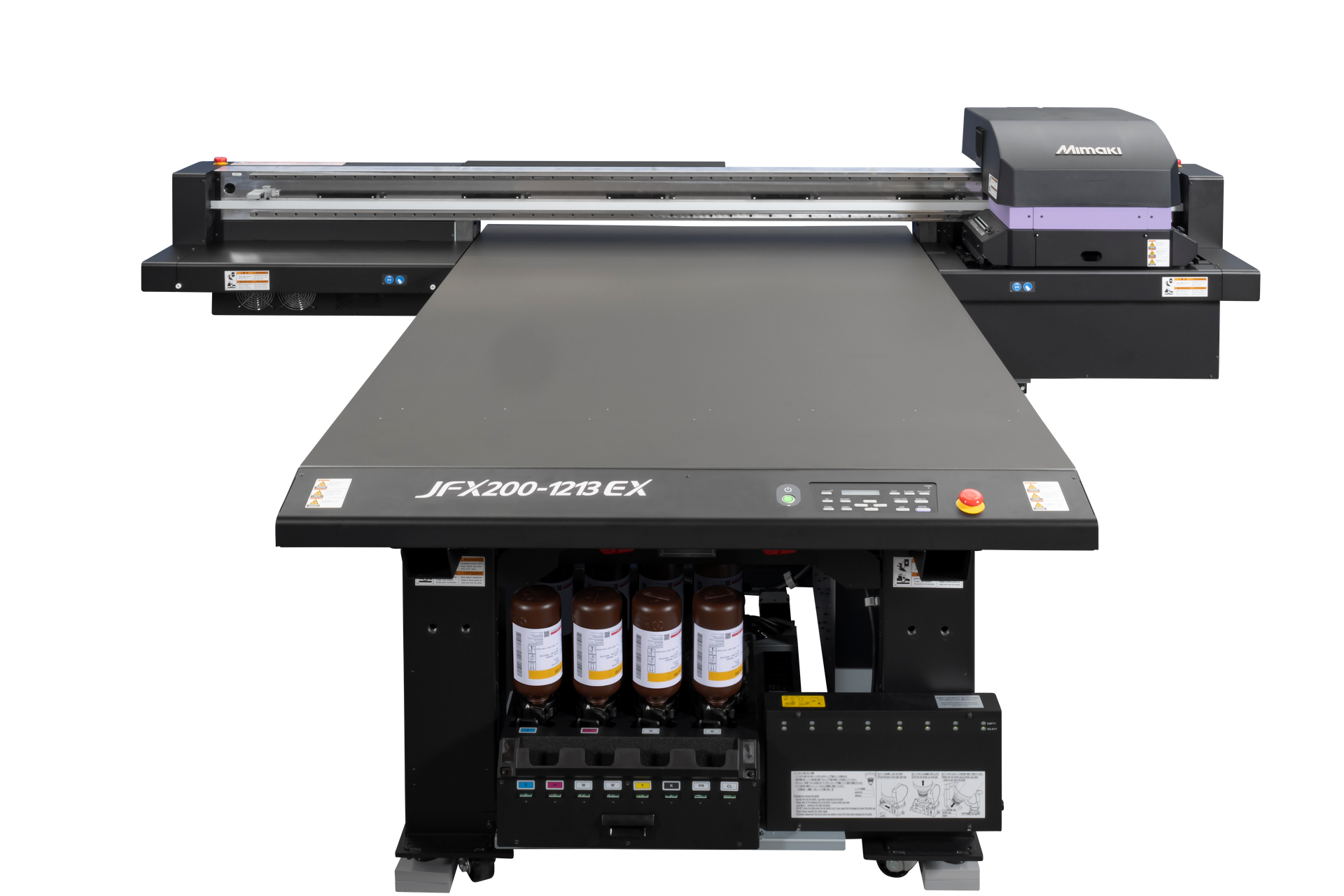 The JFX200-1213 EX is a middle-size flatbed UV printer with about half the print size of the JFX200-2513 EX while maintaining high image quality, high added value, and high production prints.