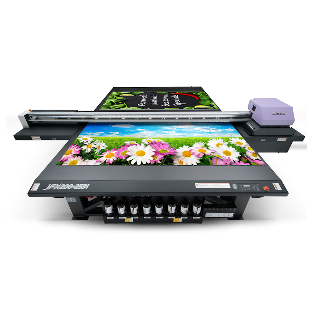 The new JFX200-2531* is a large flatbed UV-curable inkjet printer that has twice the printing area as compared with the entry model, JFX200-2513, while retaining its printer engine.