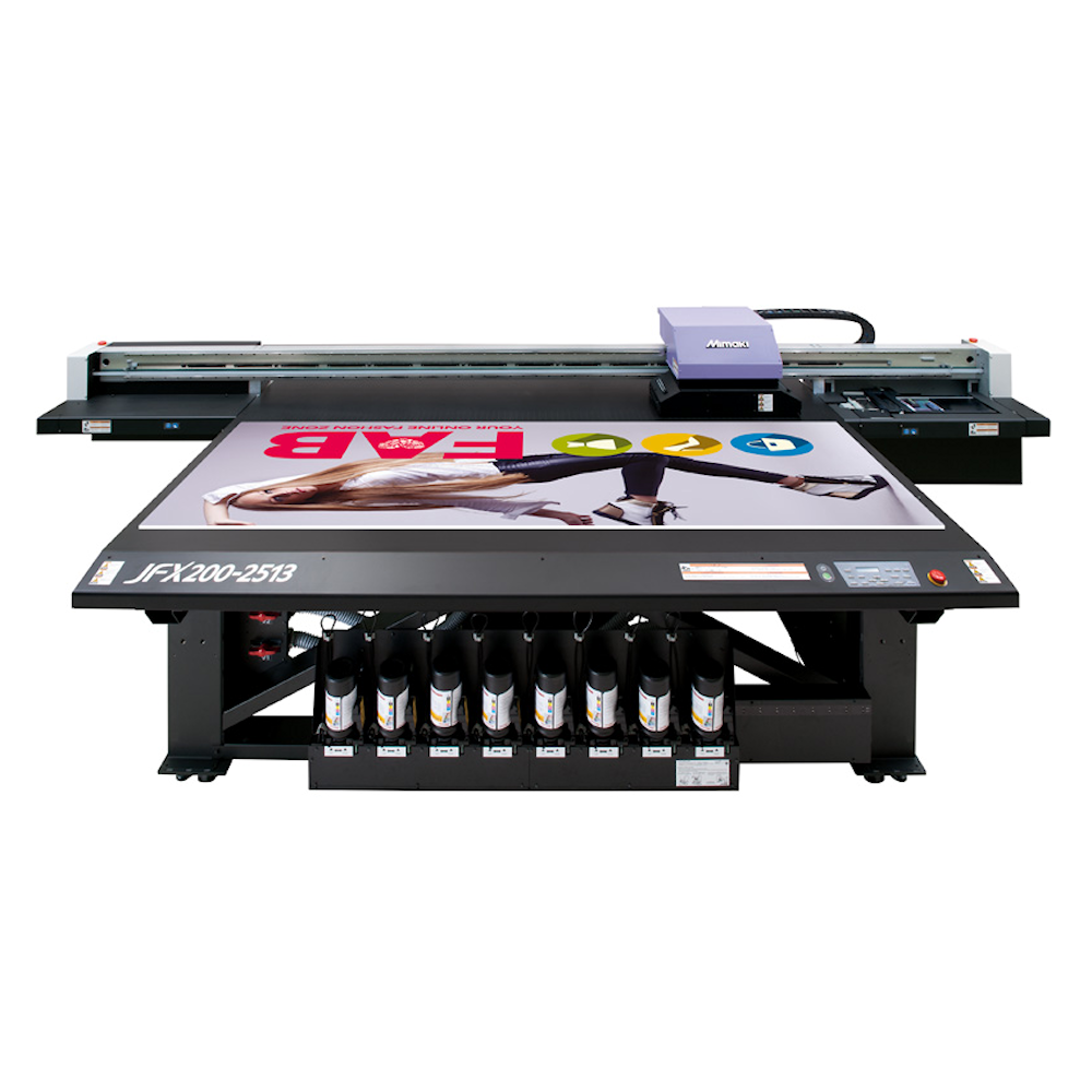 Developed using Mimaki engineering knowhow and technology, the JFX200-2513 is an entry-level model printer that is equipped with all the necessary performance, product quality, ease of use, and environmental friendliness required of a flatbed printer.