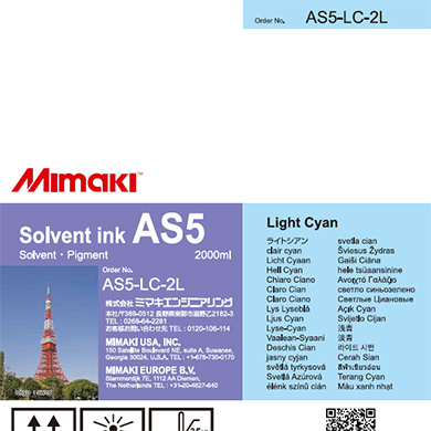 - Mimaki AS5-LC-2LL Solvent ink pack Light Cyan 2L
