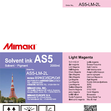 - Mimaki AS5-LM-2LL AS5 Solvent ink pack Light Magenta 2L