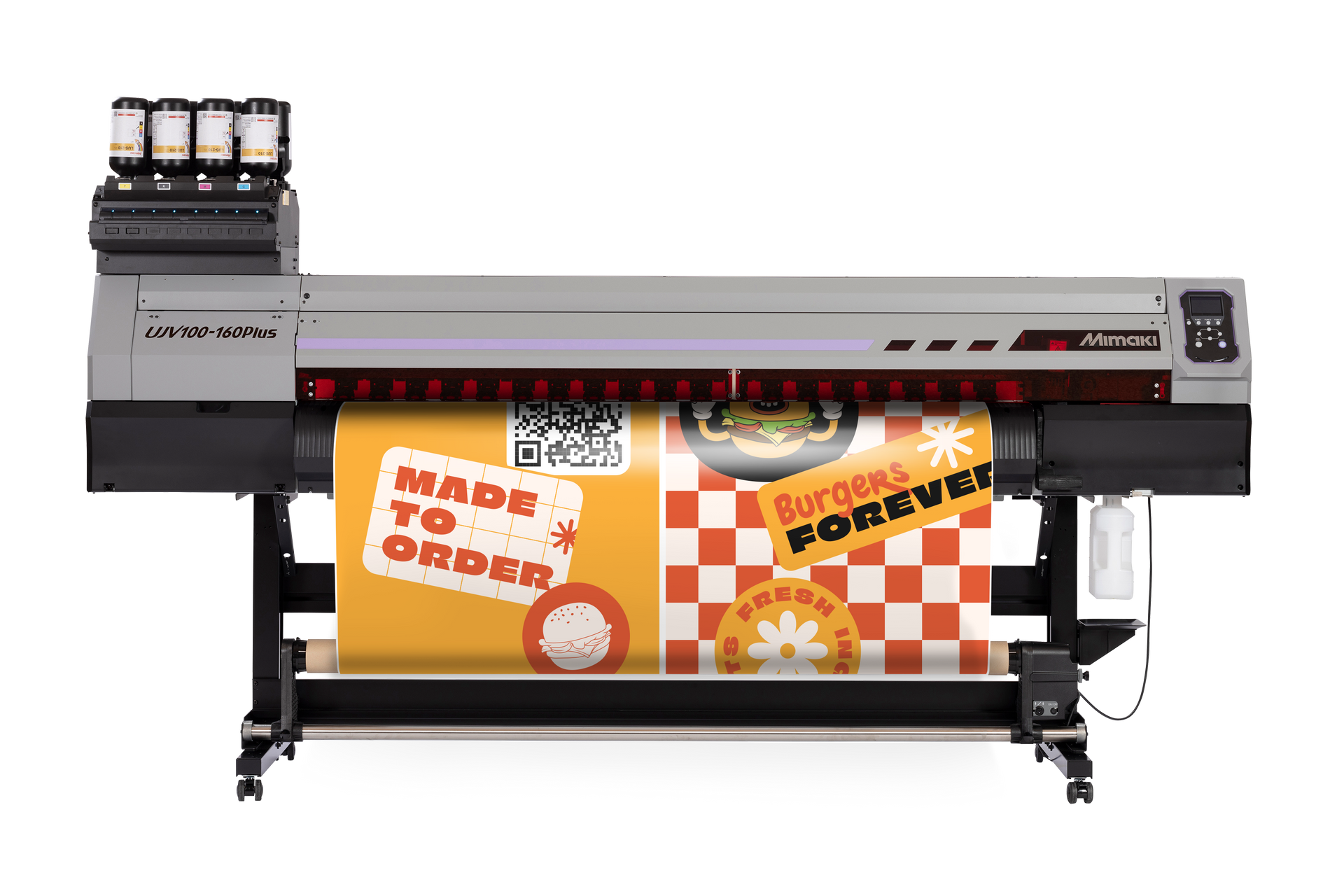The UJV100-160Plus is a competitively priced UV-LED roll-based printer with many productivity features found in higher-end models. It features Mimaki instant-dry UV-LED inks that adhere to a variety of media including paper, PET film, fabric, vinyl, and more -making post-printing handling and finishing effortless. With UV-LED lamps, the inks cure instantly, dramatically increasing printing speed and efficiency. This multi-purpose machine is suited for a variety of applications while keeping costs low.