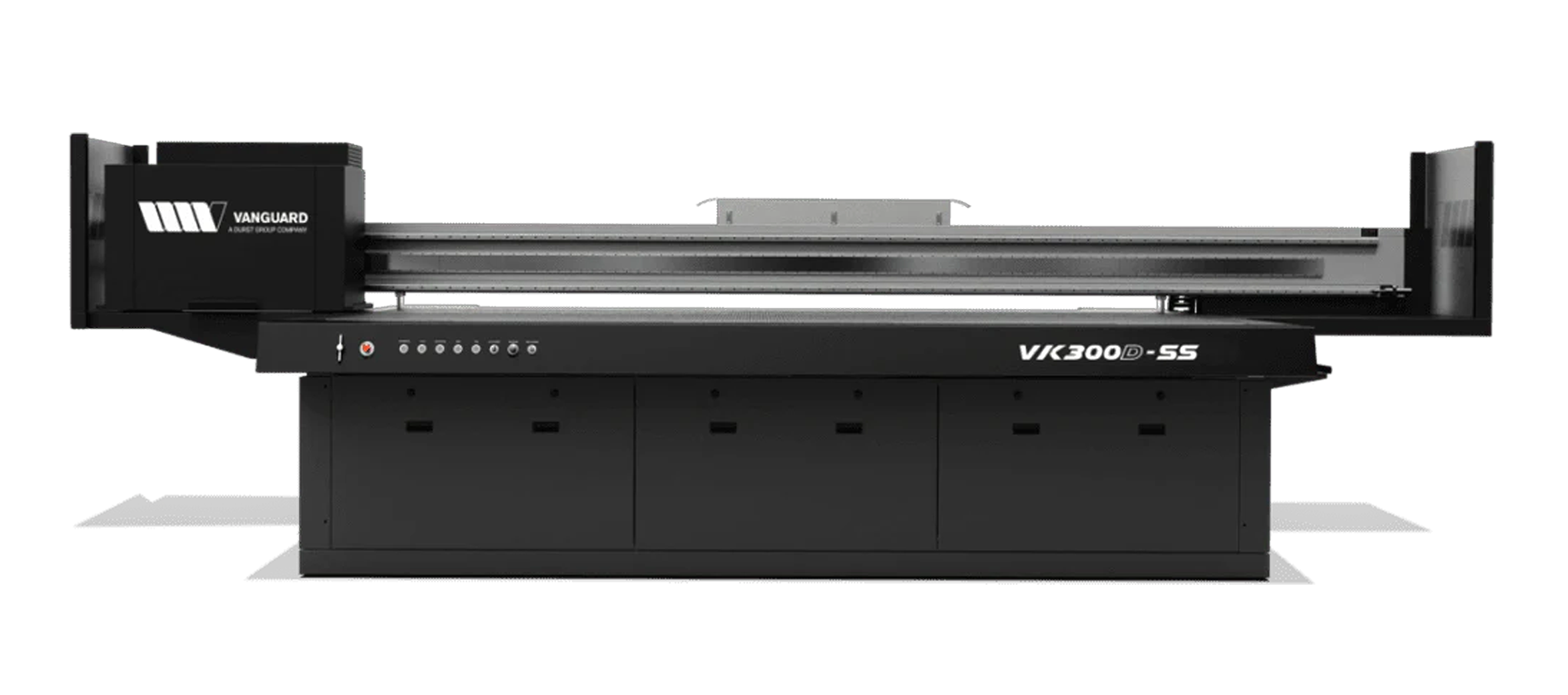 Tackle warped substrates with confidence using the Vanguard VK300D-SS—an industrial UV-LED flatbed printer featuring a high-suction vacuum table and scalable printhead architecture for precision, speed, and AI-optimized visibility.