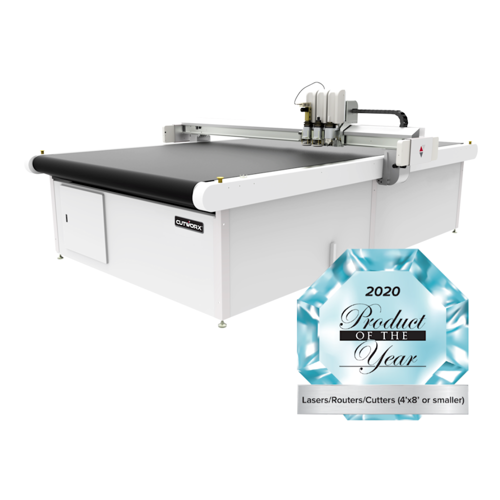 Apex Series Digital Flatbed Cutter Front Angled With Award