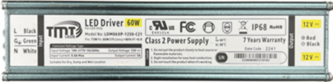 The LDM060P is a 60W, Class 2 Power Supply with 7 years warranty and High Power Factor Correction. It can be used in outdoor. It is UL listed and safely can be used in Dry, Wet and Damp locations.